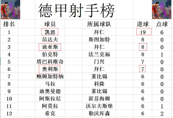 射手榜方面,凱恩今天打入一球后,和曼城的哈蘭德都是19球,距離20球只差1球,凱恩這邊只踢了15輪就19球,哈蘭德則是踢了17輪。迪亞斯破門,追上昂達(dá)夫,伯克特,三人8球并列第2,距離榜首的凱恩有11球之多。奧利斯進(jìn)球后則是追上塔巴科維奇,7球并列第5。